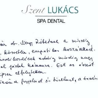 Even before the simplest dental treatment, one has a little fear of having to see a dentist. One of the main reasons why many people go to the dentist too late is that they are afraid and tend to procrastinate until the dental treatment has to be done. Well, here at Saint Lucas SPA Dental, at the fist consultation my fears were allayed and I was encouraged by confident, kind and positive communication. My dentist, Dr. Róbert Nagy very carefully considers all treatment options and applies the most appropriate one. That’s how I avoided a jaw paralysis and a fracture. I find it very important that as a patient I sit down in the dentist chair knowing I am in the best hands. I’ve never left the dental office in a bad mood. I’ve been also very satisfied with the assistants. They are nice, they recognise me and they greet me even if they don’t work at my treatment. This team was a very good choice, I hope they stay together for a long time.