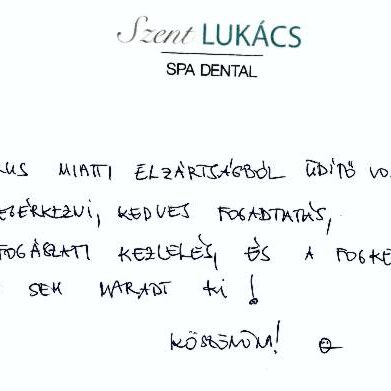 My friend recommended me Saint Lucas SPA Dental. The clinic has met or even exceeded my expectations. Pleasant environment, friendly atmosphere and above all professional work. Dr. Zsófia Tóth is an angel, I would recommend her to anyone, she is accurate, precise and very kind. Thanks again! 🙂
